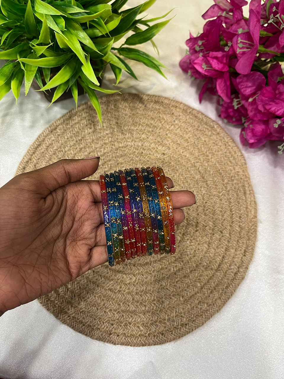 Add a touch of vibrant elegance to your wrist with the Hridhayam Glass Bangle—where timeless tradition meets a modern twist. Crafted from premium quality glass, each bangle dazzles with a brilliant, prism-like shine and is available in a range of stunning colors to suit every mood and occasion.