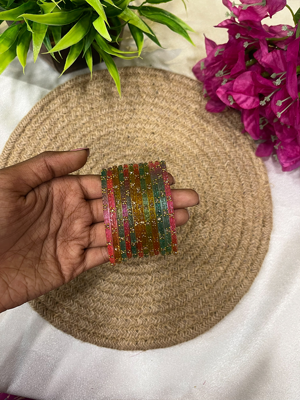 Add a touch of vibrant elegance to your wrist with the Hridhayam Glass Bangle—where timeless tradition meets a modern twist. Crafted from premium quality glass, each bangle dazzles with a brilliant, prism-like shine and is available in a range of stunning colors to suit every mood and occasion.